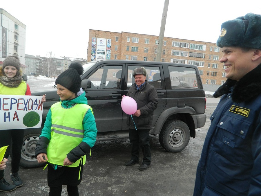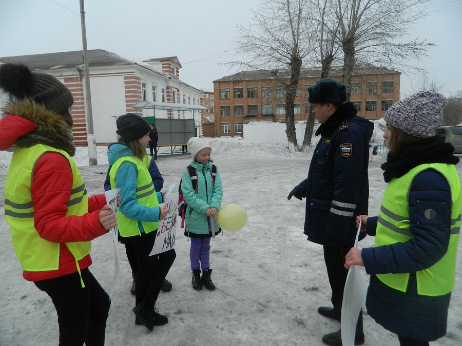 Вблизи пешеходного перехода, расположенного у школы, инспектор ГИБДД и его юные помощники провели акцию, направленную на повышение внимания школьников и взрослых к безопасному поведению на улице. Юные инспекторы движения обращались к детям — пешеходам и их родителям с призывом соблюдать правила дорожного движения, а к водителям быть вежливыми и пропускать пешеходов на пешеходном переходе.