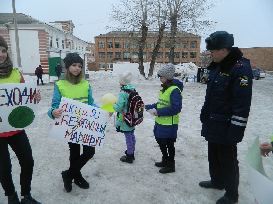 В Красноярском крае в г. Назарово инспекторы ГИБДД вместе с отрядом ЮИД школа №1» провели акцию «Безопасный маршрут, направленную на предотвращение ДТП с участием пешеходов.