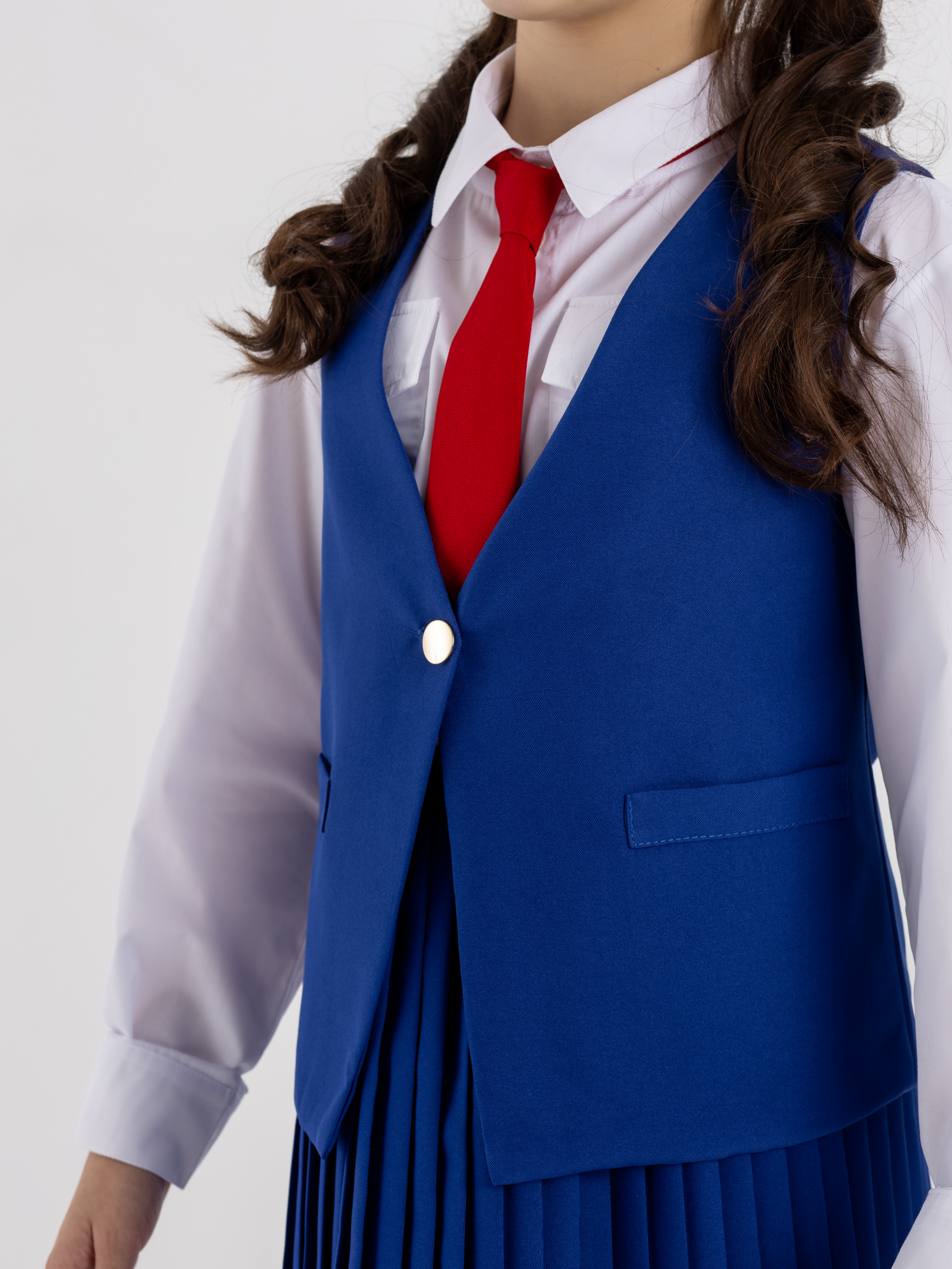 - Рубашка: белого цвета с классическим воротником и длинным рукавом;