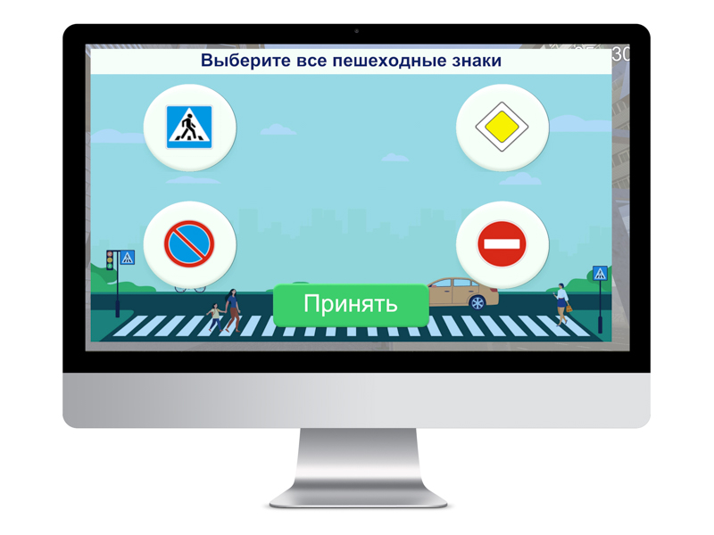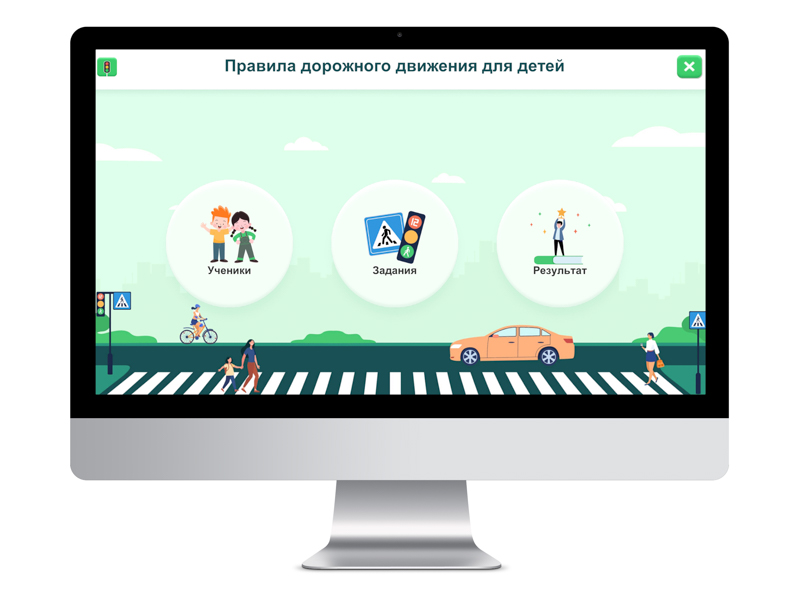 Обучение построено в игровом формате, где виртуальный инспектор помогает детям самостоятельно пройти 5 различных маршрутов.